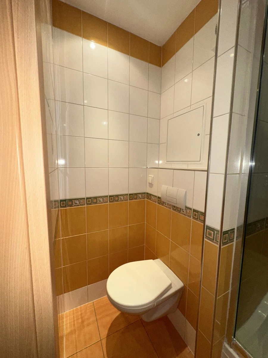 Byt se nabízí nevybavený. Kuchyně disponuje elektrickým sporákem a digestoří. Obývací část a ložnice je nezařízena. V koupelně je sprchový kout, umyvadlo a toaleta.