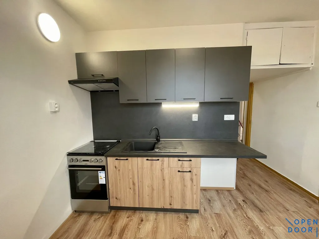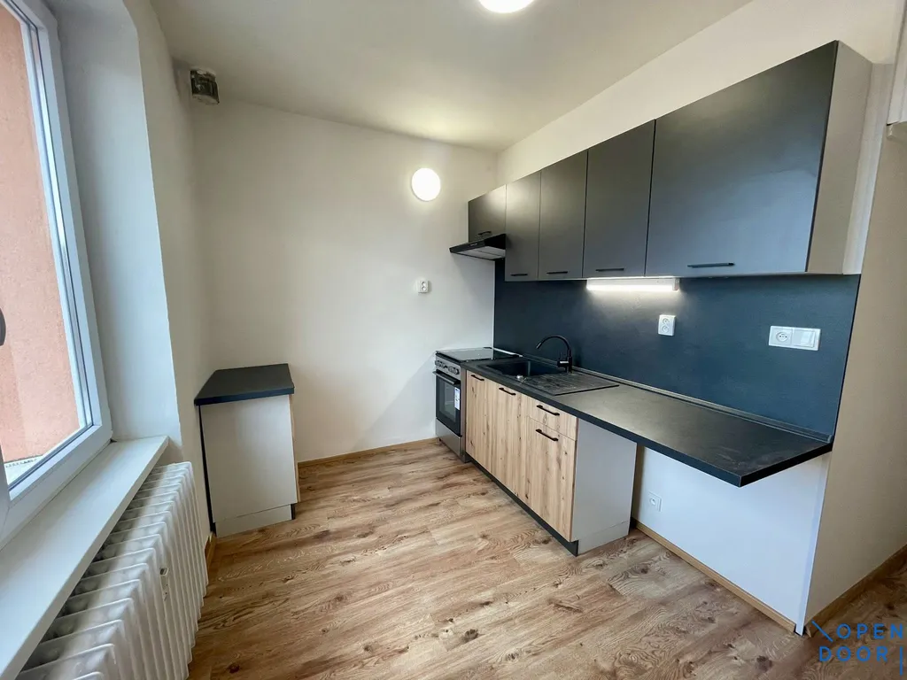 Byt je po kompletní rekonstrukci a je nabízen jako částečně vybavený. K dispozici je kuchyňská linka s elektrickým sporákem a elektrickou troubou. Koupelna s velkoformátovými obklady je vybavena vanou, umyvadlem se skříňkou a zrcadlem, toaleta je samostatná.