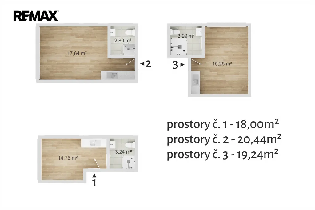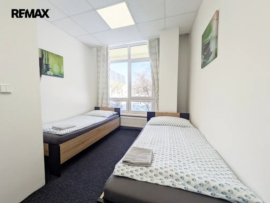 Celkem tři prostory, každý o velikosti cca 20m² jsou vhodné pro provozovnu, kanceláře či služby. K dispozici je vlastní sociální zázemí – sprcha a WC. V minulosti byly prostory využívány k ubytovacím účelům, po dohodě s majitelem a po menších úpravách je možné je přizpůsobit také jako prodejnu nebo skladovací prostor. Velkou výhodou je výborná dopravní dostupnost, rozsáhlé parkoviště v blízkosti objektu.