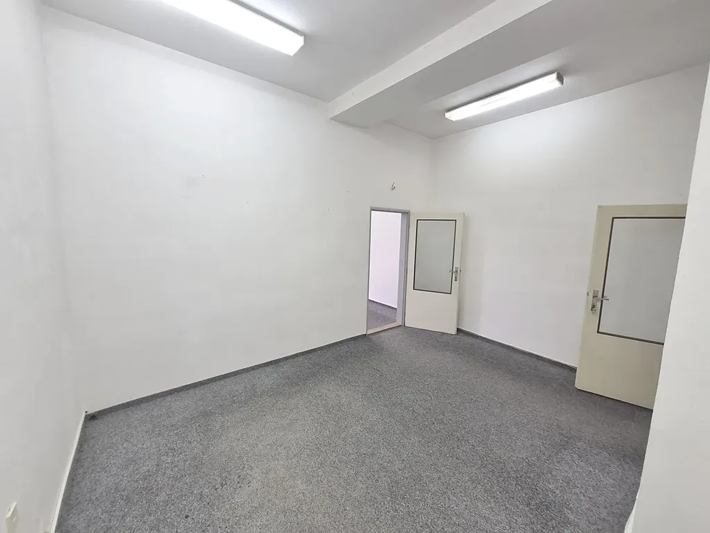 Pronájem nebytových prostor, Praha - Radotín, nám. Osvoboditelů. Dvě průchozí místnosti ( 16 a 19 m2) o celkové výměře cca 35 m2 v prvním patře administrativně technického objektu se společným sociálním zázemím na chodbě. Vhodné jako kancelář, případně i ateliér. Zajímavá lokalita v centru městské části. Ihned volné.