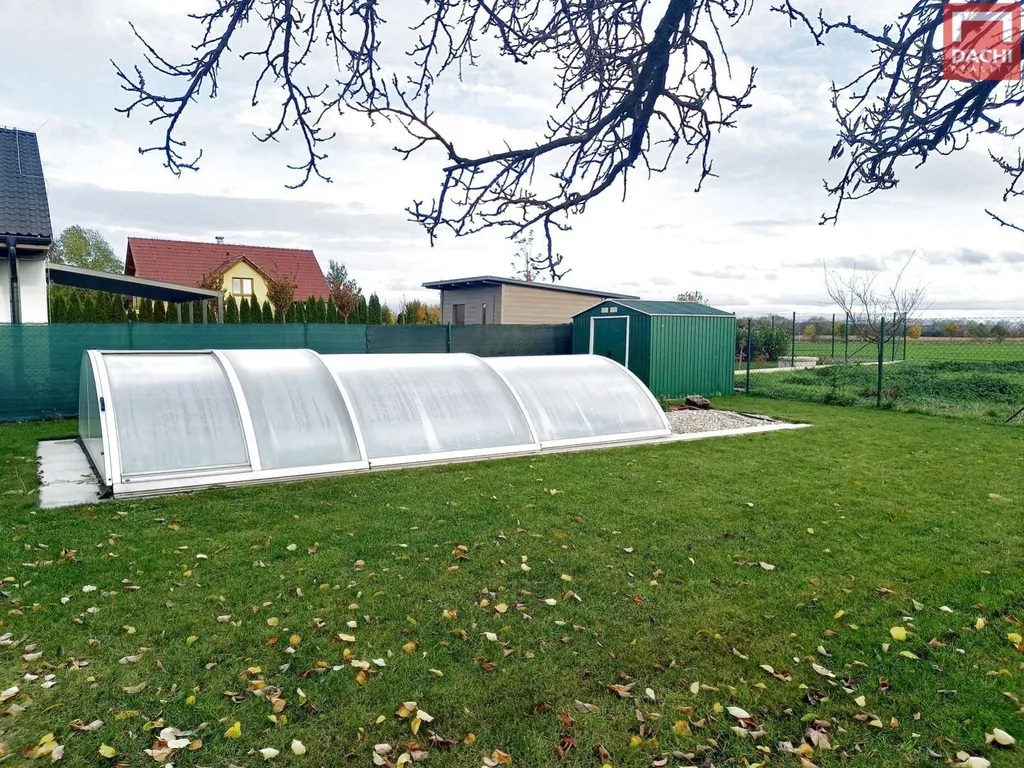 Venku na zahradě najdete zahradní domek na nářadí, zastřešenou terasu, která navazuje na dům a poskytuje skvělé místo pro posezení venku, a také zastřešený venkovní bazén o rozměrech 5m x 3m, který bude skvělým místem pro osvěžení v letních dnech. Pozemek je dobře udržovaný a zatravněný. Před domem je také dostatek prostoru pro parkování aut.