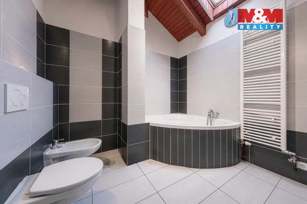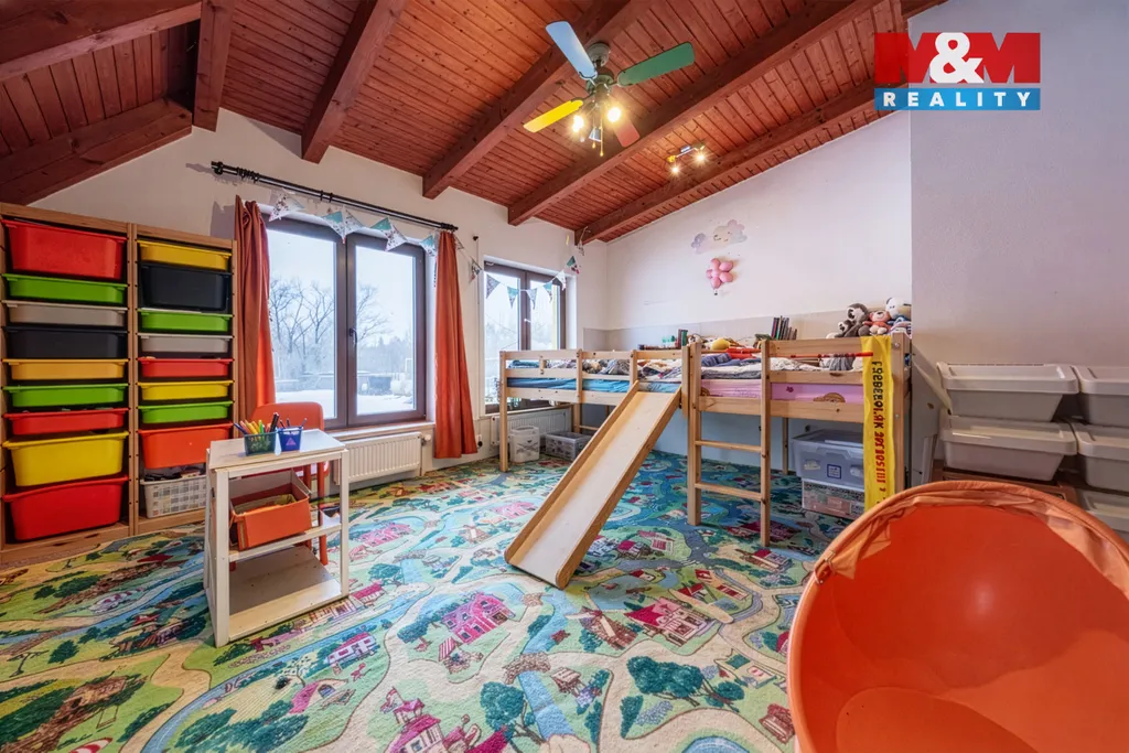 Horní patro tvoří samostatná bytová jednotka 5+1 s vlastním vstupem a podružným elektroměrem. K dispozici jsou dvě koupelny (jedna v rekonstrukci), spíž, udírna, příprava na saunu, půda s úložným prostorem, dřevěné stropy a dlažby. Samostatné vytápění a ohřev vody.