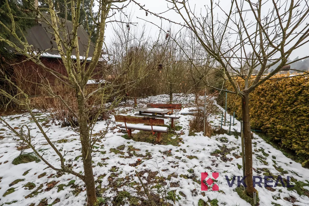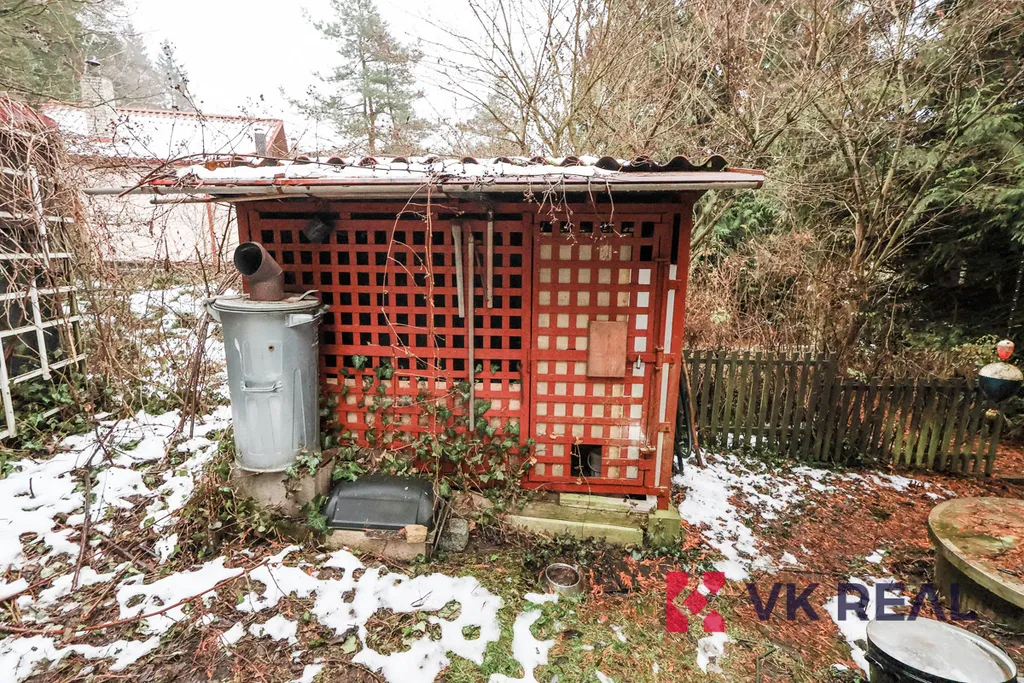 K chatě náleží mírně svažitý pozemek/zahrada cca 320m2. Tento je orientovaný od chaty směrem k jihu. Na pozemku stojí přístřešek a kolna na zahradní nářadí.