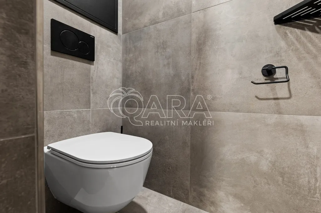 Dominantou bytu je obývací pokoj s kuchyňským koutem, ze kterého se přes zimní zahradu dostanete na západně orientovanou předzahrádku o velikosti 106 m². Ta nabízí příjemné posezení, dostatek soukromí a možnost trávit čas venku prakticky od jara do podzimu.