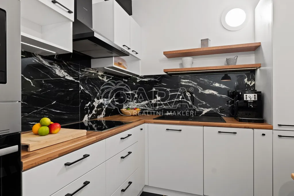 Kuchyňská linka je vybavena všemi potřebnými spotřebiči, takže vás nečekají žádné zásadní investice.