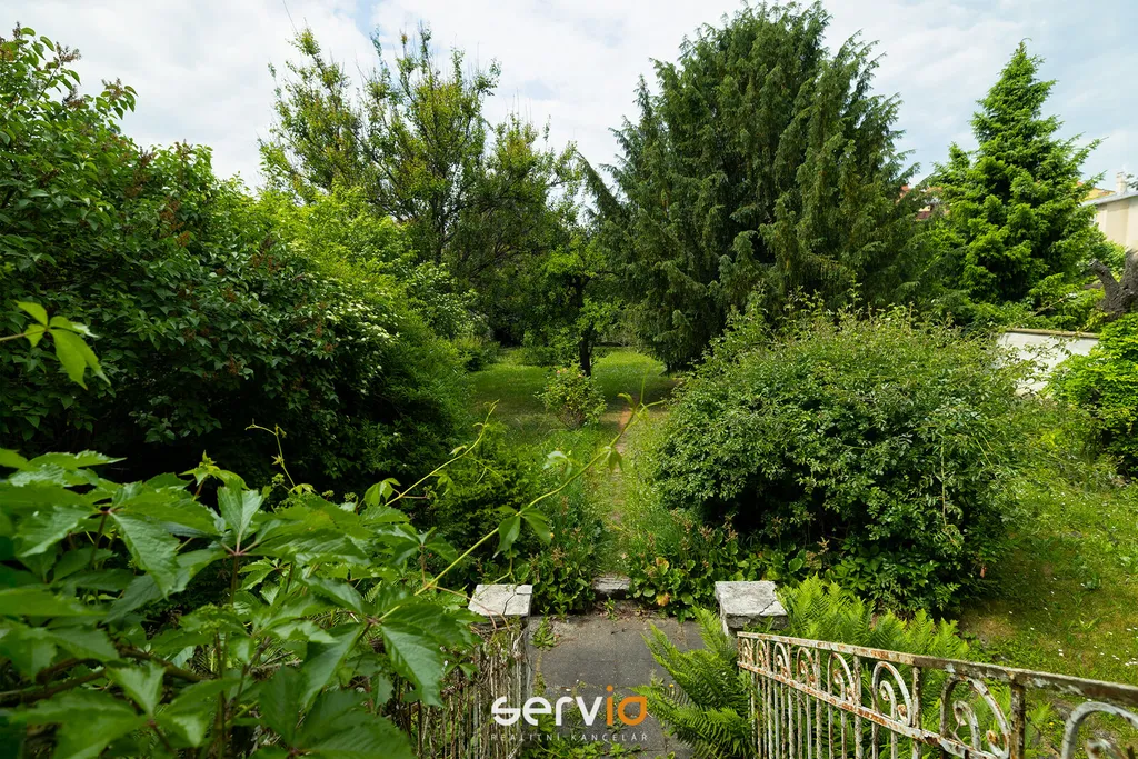 Zahrada za domem je orientována do vnitrobloku a poskytuje příjemné, klidné zázemí mimo ruch ulice. Celková plocha pozemku je 860 m², z toho zastavěná plocha a nádvoří tvoří 247 m² a samotná zahrada má 513 m².