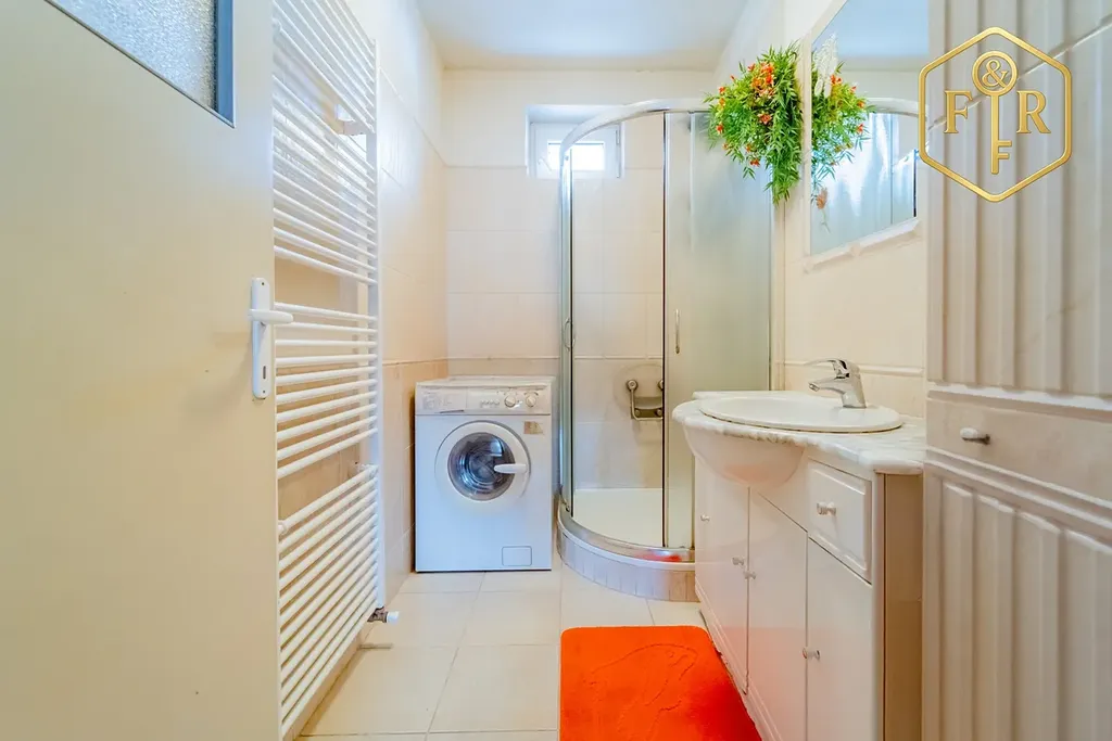 Užitná plocha je 246 m² (PP 56 m², 1.NP 110 m², podkroví 81 m²) + balkon >5 m² + stodola + garáž + dílna + skleník.