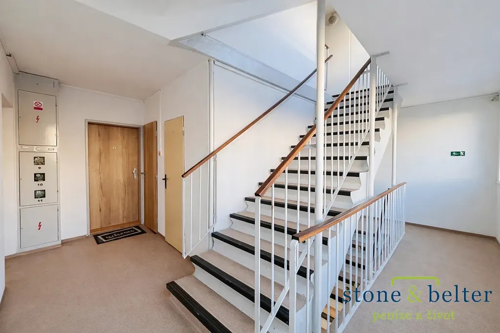 Byt se nachází ve 3. patře zatepleného panelového domu s výtahem, což se pozitivně promítá do energetických nákladů. Velkou konkurenční výhodou je nadstandardní lodžie o ploše 9 m² s novou dlažbou a krásným výhledem do parku – u dispozice 1+kk jde o benefit, který výrazně zvyšuje atraktivitu pro nájemce.