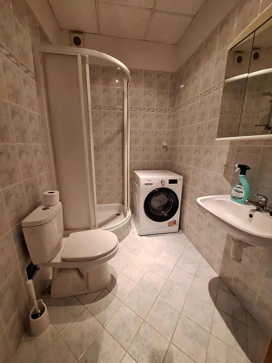 Pěkný byt 1kk, chodbička, koupelna s pračkou, sprchovým koutem a WC.