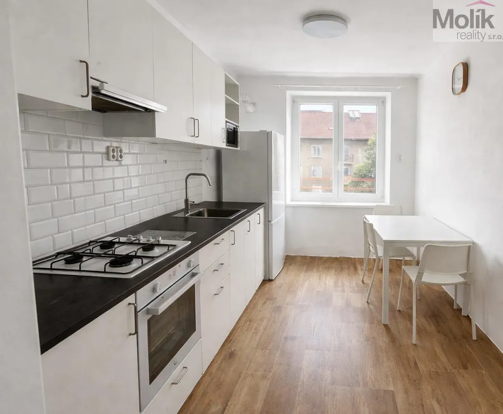 Byt se pronajímá částečně vybavený: Kuchyňská linka s troubou, digestoří, mikrovlnou troubou lednicí. Jídelní stůl, židle a šatní skříň.