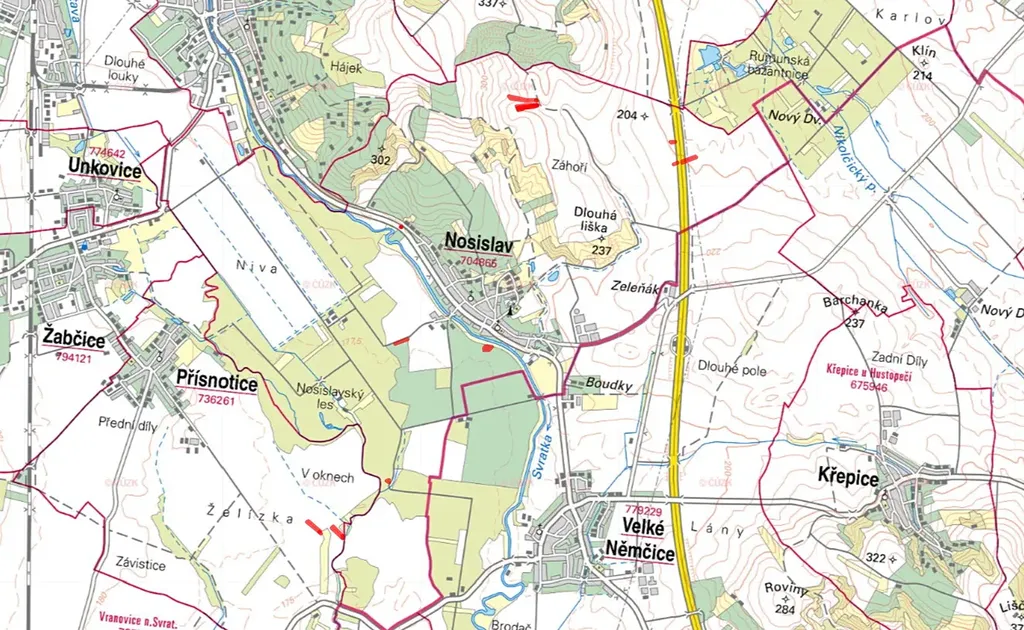Pozemky se nacházejí v povodí řeky Svratky, v oblasti s dlouhodobě zemědělsky prověřenými podmínkami. Území je převážně rovinaté, což usnadňuje hospodaření i přístup mechanizace. Kvalitu půdy podtrhuje vysoká bonita, která je důležitým předpokladem pro stabilní zemědělské využití a dlouhodobou hodnotu pozemků.