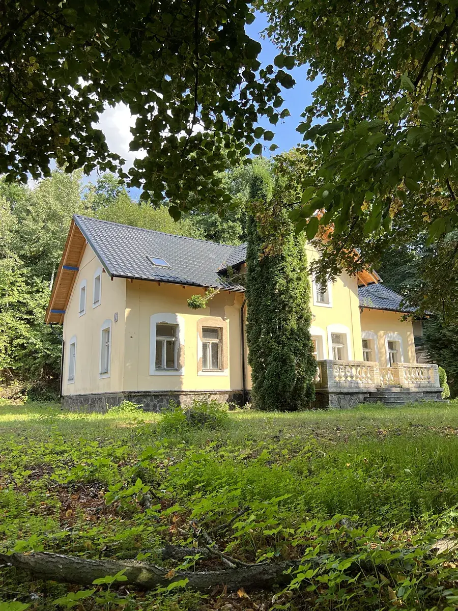Hlavní budova má cca 360m2 je zkolaudovaná v tuto chvíli jako objekt určený k bydlení pro rekreační využití a má samostatné popisné číslo. V této budově byla v prosinci v roce 2021 dokončena celková rekonstrukce střechy, včetně výměny potřebné konstrukce a dodání nové střešní krytiny. Budova je ve stavu vhodném k rekonstrukci. Jejím ideálním využitím by byl penzion, nebo větší vila pro rodinu. Tato budova má výhled na Hubačovský rybník, který se nachází od hranice pozemku cca 50m.