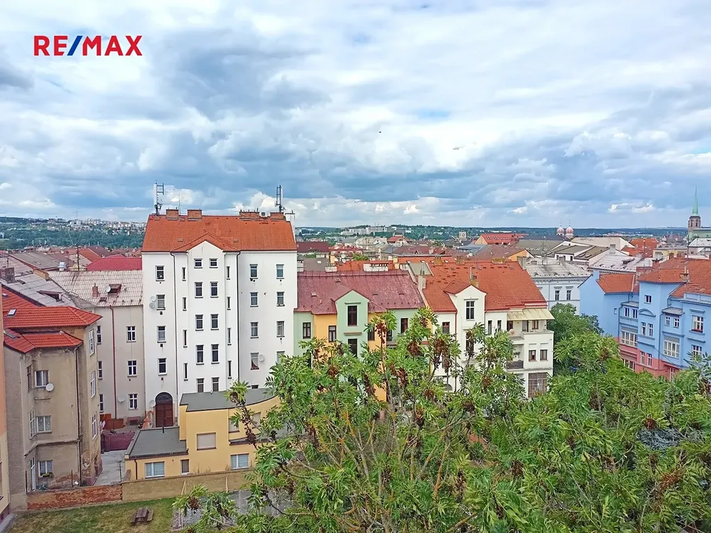 Prostorný 3+kk s vysokými stropy a přístupem na střešní terasu s výhledem na Plzeň.