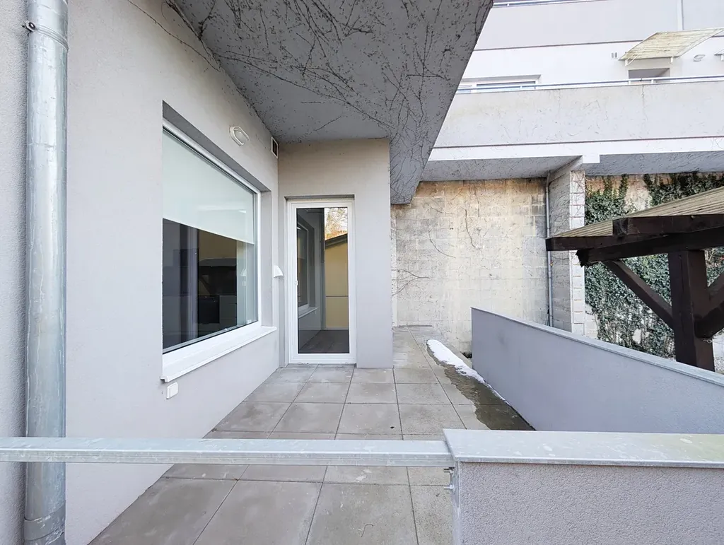 Byt je situován v moderní novostavbě zasazené do svahu, která má unikátní členění a díky tomu nabízí u takto malého bytu například terasu.