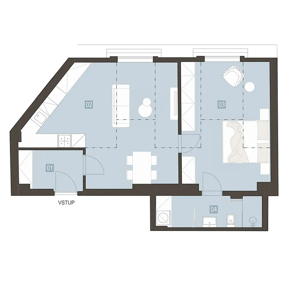 - Podlahová plocha 63.3 m² a celková plocha 65 m²