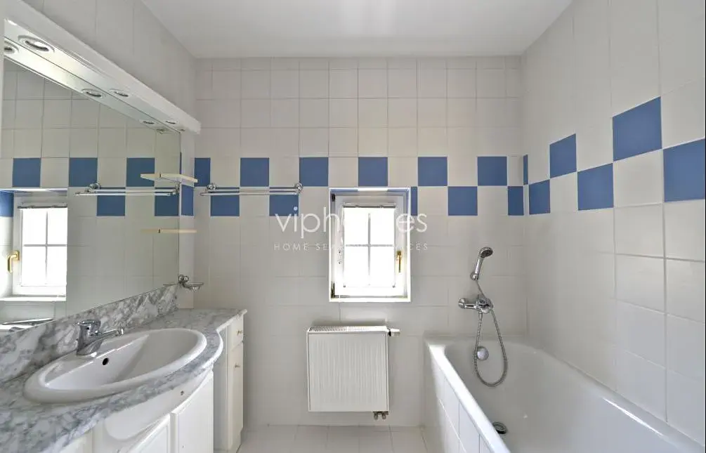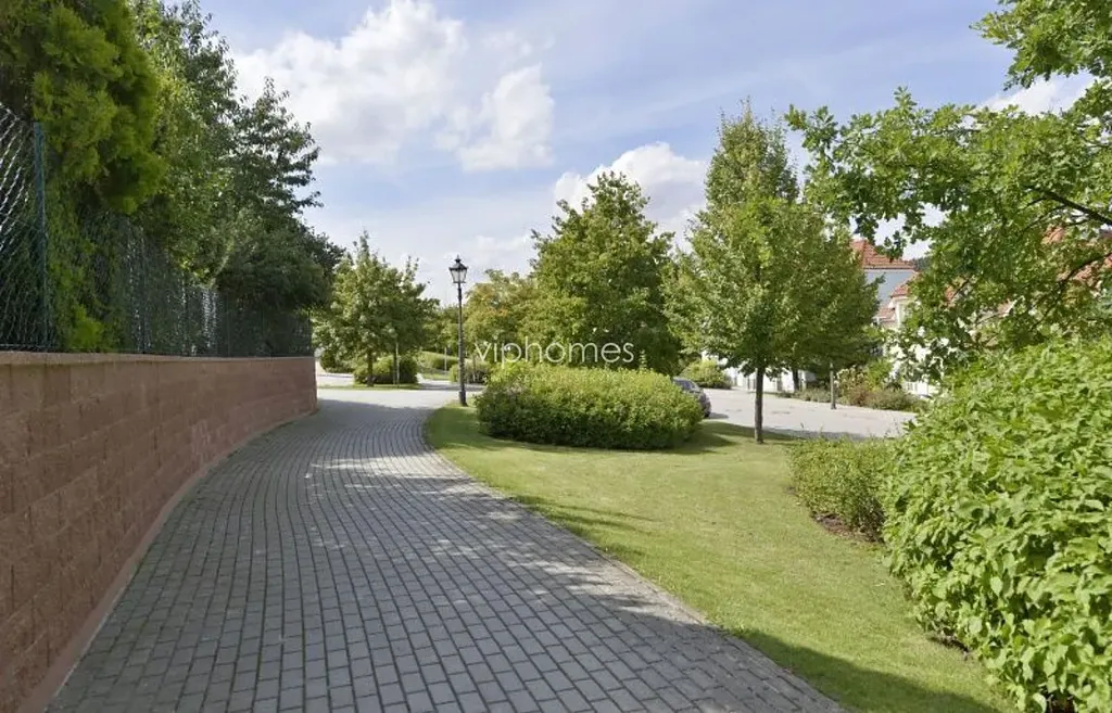 Dům má v přízemí obývací pokoj, plně vybavenou kuchyň, jídelnu a prádelnu, dále toaletu pro hosty, vstup do garáže a vstupní halu. Vstupní halu doplňuje šatna s úložným prostorem. Z obývacího pokoje je vstup na terasu s posezením a menší zahradu. V patře jsou situovány čtyři ložnice, dvě hlavní s en-suite koupelnami. Jednu ložnici doplňuje šatna, dále je v patře třetí koupelna se sprchou a samostatná toaleta. Vestavěné skříně, plovoucí podlahy, centrální vysavač, pračka, sušička, alarm, satelitní připojení, vysokorychlostní internet. . Velmi příjemné prostředí, ideální pro rodiny s dětmi.