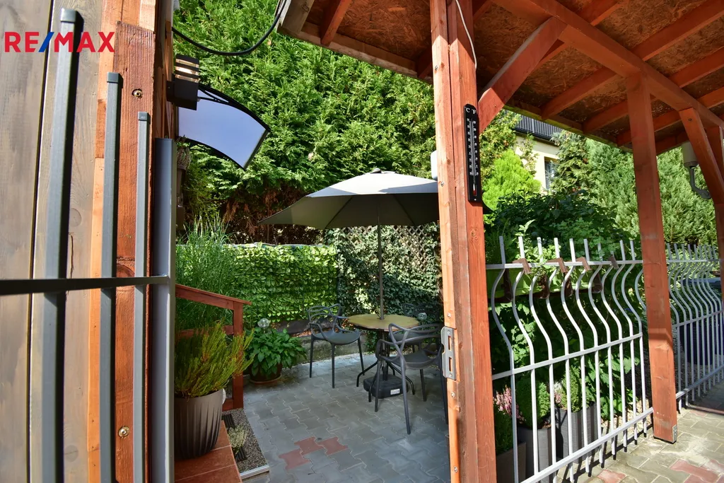 Součástí pronájmu je také oplocený venkovní prostor před mobilheimem, vhodný k posezení, uzavřený brankou a zajišťující dostatek soukromí.