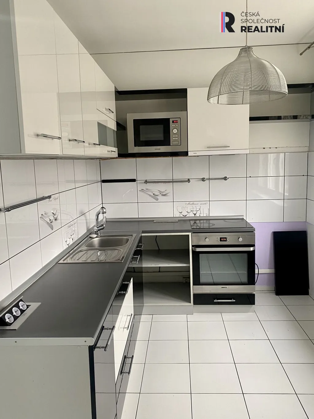 Byt disponuje vybavenou kuchyní (lednice, trouba, mikrovlnka), koupenou s vanou a zádveřím s pračku, samostatným WC, prostornou halou a třemi neprůchozími pokoji - 12m2, 8m2 a 17m2 se vstupem na lodžii a orientací na západ. K dispozici sklepní koje a další společné prostory v domě.