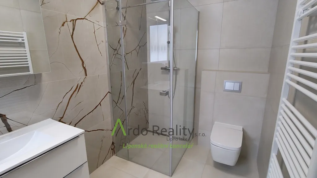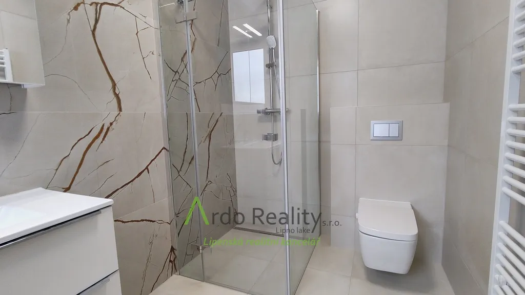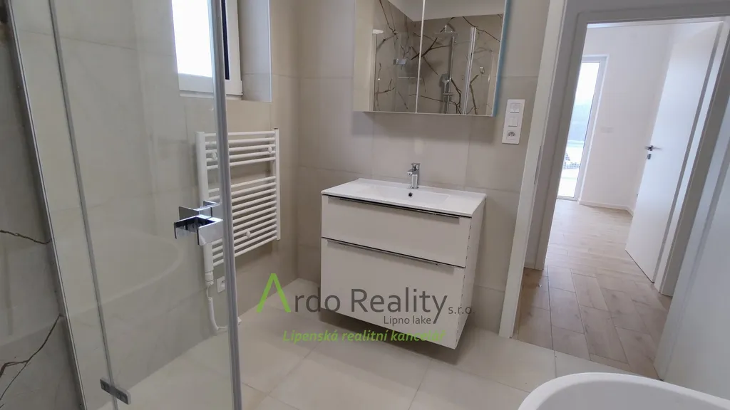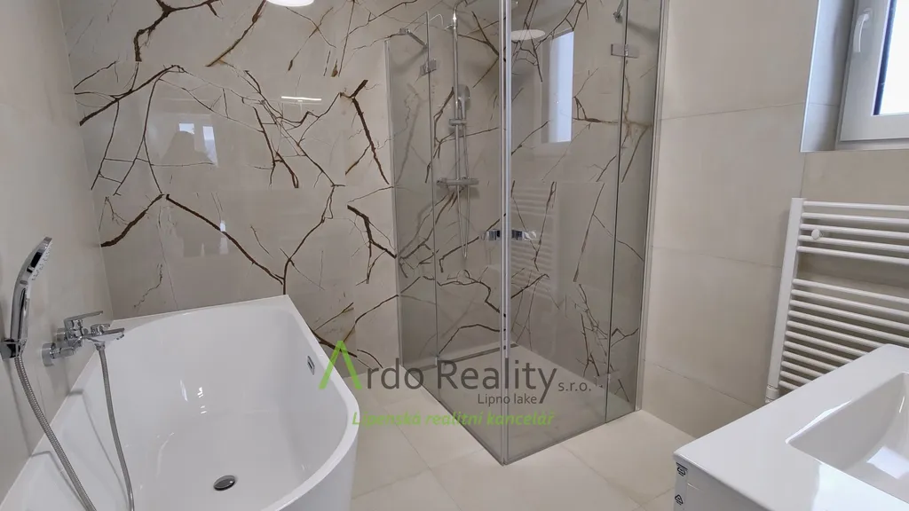 DLOUHODOBÝ PRONÁJEM na dobu určitou 5 let nebo dle dohody, s cílem udělat nájemcům radost, aby přijali a užívali celý dům i s pozemkem jako opravdoví vlastníci. Právě byla dokončena stavba nadstandardních šesti stejných domů u lázeňského městyse Frymburk, na břehu Lipenského jezera. Prezentujeme zde bezbariérový bungalov, který je situován tak, aby prostorná terasa byla orientována jižně, s výhledem na jezero. Tento majitelé nevybavili. Domy byly postaveny za použití nejmodernějších technologií, jsou energeticky velmi úsporné „B“, vytápěné německým tepelným čerpadlem Viessman vzduch-voda, s podlahovým topením v celém domě. V obývacím pokoji se nachází ale i komín jako příprava pro krbová kamna nebo krb. Stavba je zděné konstrukce Porotherm 30 cm, zdi jsou izolovány 15 cm polystyrénem, stropní izolace je 18 cm, okna jsou trojitě zasklená a před všemi jsou instalovány rolety s elektrickým ovládáním. Střecha je valbové konstrukce a krytina keramická německého výrobce Roben. Půda je přístupná po skládacím schodišti. Dispozičně je dům řešen takto: Ložnice rodičů, která má k dispozici vlastní koupelnu se sprchovým koutem a WC s bidetovým mechanizmem, dále prostorný obývací pokoj s vybavenou kuchyní Schüller, jejíž pracovní deska se dřezem Blanco, se skříňkami a spotřebiči Elektrolux zabírá celou délku místnosti. Je provedena příprava napojení vody a elektro na americkou lednici s výrobníkem ledu. V tomto pokoji je právě možnost nainstalovat jednoduše krbová kamna a tak si zajistit ve studených dnech příjemnou atmosféru. V druhé části domu jsou další dva pokoje, z nichž lze rovněž vyjít na prosluněnou terasu. Na konci chodby je pak samostatné WC s malým umyvadlem a poslední, ale neméně důležitou místností je parádní koupelna s volně stojící vanou, sprchovým koutem a umyvadlem. Před hlavními vstupními dveřmi je ochranné zádveří, kde je venkovní jednotka TČ a také provedena příprava elektro na možnost instalace auto nabíjecí stanice, z něhož je teprve vstup do domu. Zde je úschovný prostor, je tu místo na velkou odkládací skříň a je odtud vstup do technické místnosti. Ta může také skrývat další pohodlnou skříň pro ukládání potřebných věcí, hlavně je zde vnitřní jednotka tepelného čerpadla, dále pak tlaková nádrž s ovládáním čerpání vody a také moderní úpravna vody Watex, která zajistí tu nejkvalitnější pitnou vodu. Zbývá zde ještě dost místa pro pračku a sušičku. Největší devizou tohoto domu je velká venkovní terasa cca 40 m2 s krásným výhledem, která je ze dvou třetin krytá variabilní odsouvací střechou. Tato terasa je propojena se všemi obytnými místnostmi domu. Dešťová voda je svedena do podzemní retenční nádrže o obsahu 4000 litrů s možným využitím k zalévání. Parkování je řešeno pro dvě auta na vlastním pozemku u domu. Každý dům má své vlastní zabezpečovací zařízení Jablotron, napojené na pult ochrany s výjezdem. Připojení internetu zajišťuje Starnet. K pronájmu je připraveno nyní pět plně dokončených domů, které po dohodě můžete mít zařízeny a nebo si je můžete zařídit nábytkem dle svých představ. Celý oplocený areál je v mírném svahu pod lesem, v okolí je krásná čistá příroda. Relaxovat se dá v letním období, vodními sporty, cykloturistikou kolem přehrady, houbaření a výšlapy po šumavské přírodě. V zimním období se nabízí běžkování a sjezdové lyžování na Lipně, v Rakousku a Německu. K břehu Lipenského jezera dojdete pěšky za méně než 5 minut, Český Krumlov je vzdálen 30 km, České Budějovice 55 km, přívozem přes vodu na hraniční přechod do Rakouska Guglwald 7 km. Další podrobnosti Vám rádi sdělíme při osobním jednání.