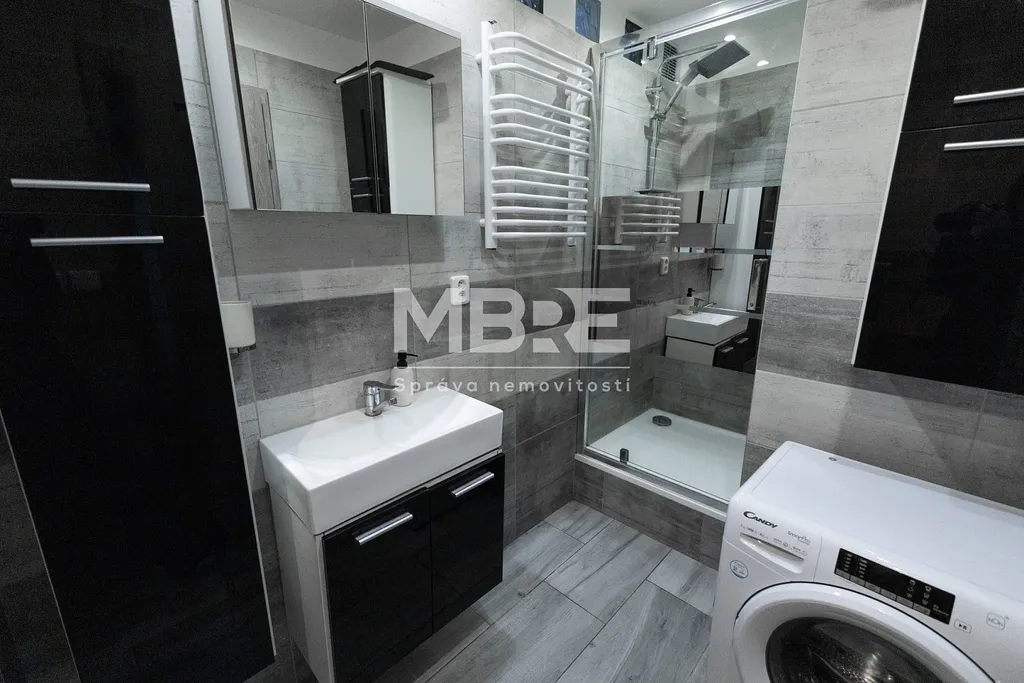 Součástí bytu je nová kuchyňská linka včetně spotřebičů, která poskytuje dostatek úložného i pracovního prostoru. Ložnice nabízí praktický úložný prostor, postel i televizi, takže je připravena k okamžitému užívání. V obývacím pokoji může zůstat krásná a stylová sedací souprava se stolkem, což ještě více podtrhuje příjemnou atmosféru bytu.