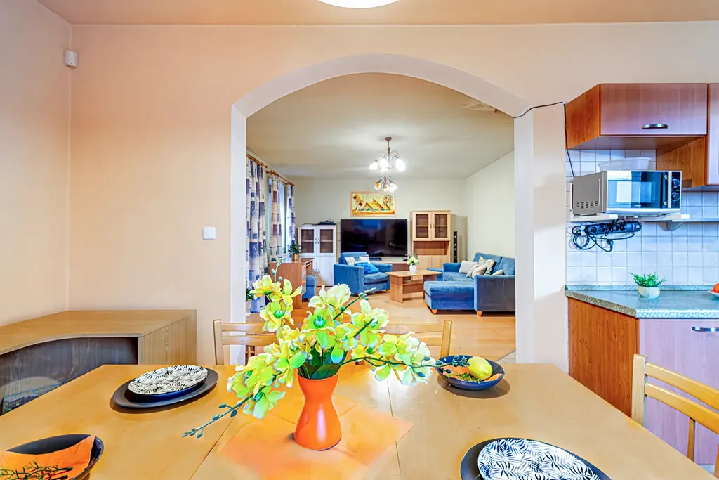 Vytápění zajišťuje plynový kotel a krb. Krb nejen vyhřejí váš domov, ale dodá mu útulnou romantickou atmosféru a uklidňující praskání dřeva.