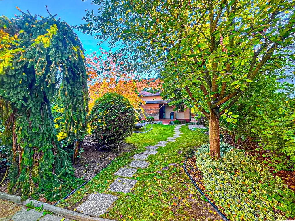Jestli něco dělá dům domem, je to zahrada. Tato zahrada je ideálním místem k relaxaci a čerpání energie, nebo setkávání s přáteli. Nabízí posezení pod pergolou s přípojkou elektřiny a možnosti grilování. Představte si zapadající letní slunce, volný večer a zahradní gril – není to ideální způsob, jak strávit čas s rodinou nebo přáteli na čerstvém vzduchu společným ochutnáváním voňavých pokrmů? Je to prostě paráda…
