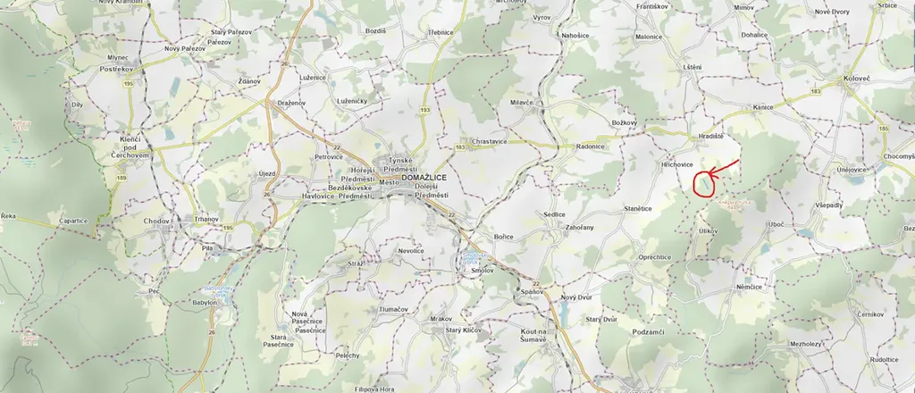 Prodám lesní pozemek v k.ú. Hradiště u Domažlic.