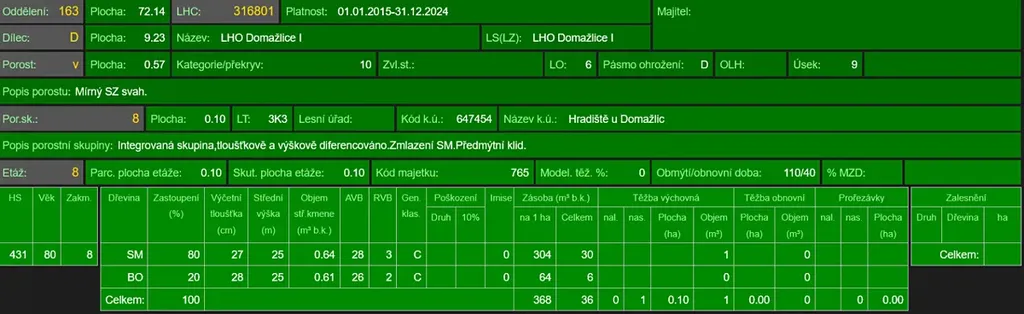Zastoupení dřevin dle LHO borovice a smrk.