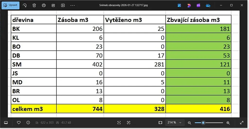Zastoupení dřevin a zásoby dřeva viz. foto.