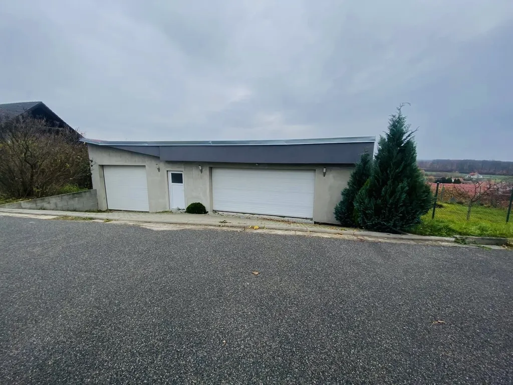 Na pozemku nyní stojí stavba z roku 2017, která dosud sloužila jako prostorná dvougaráž s dílnou o rozloze 80m2.