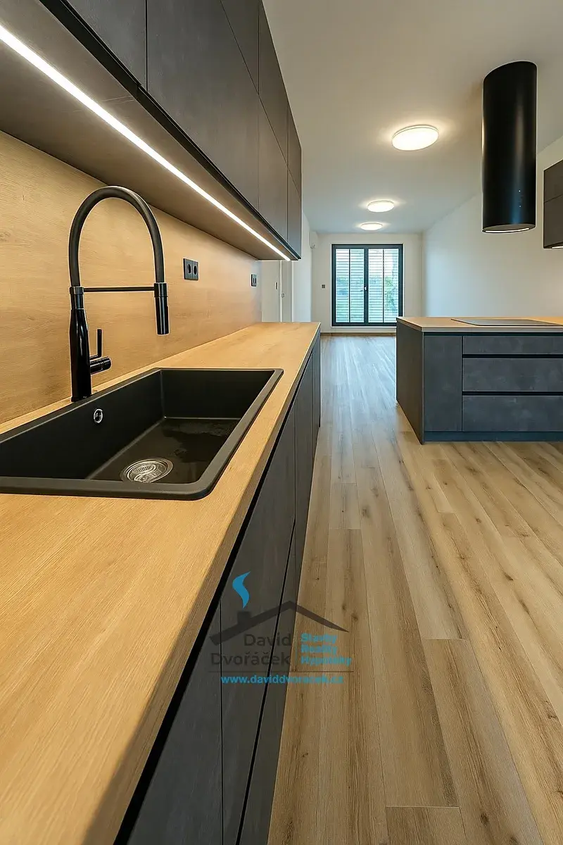 Interiér je řešen nadčasově a střídmě elegantně, s důrazem na funkčnost a kvalitu použitých materiálů. Celek působí klidně, čistě a profesionálně – vhodný jak pro soukromé bydlení, tak pro firemní využití. Dispozice domu poskytuje dostatek prostoru i soukromí pro dlouhodobý pobyt bez nutnosti kompromisů.