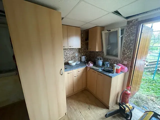 Na zahradě je postavená chatka s malou kuchyňskou linkou a novými kamny. Na pozemku se nachází solární sprcha a studna.
