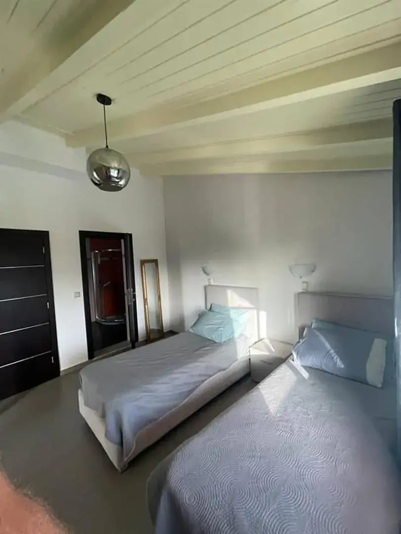 V přízemí se nachází obývací pokoj s jídelnou a kuchyňským koutem, koupelna a hlavní ensuit ložnice. V prvním patře naleznete dvě ložnice a velkou koupelnu. Z obou ložnic projdete přes francouzské dveře na krytou terasu s výhledem na moře. V prvním patře je ještě čtvrtá ensuit ložnice se samostatným vstupem, kterou lze využívat pro hosty.