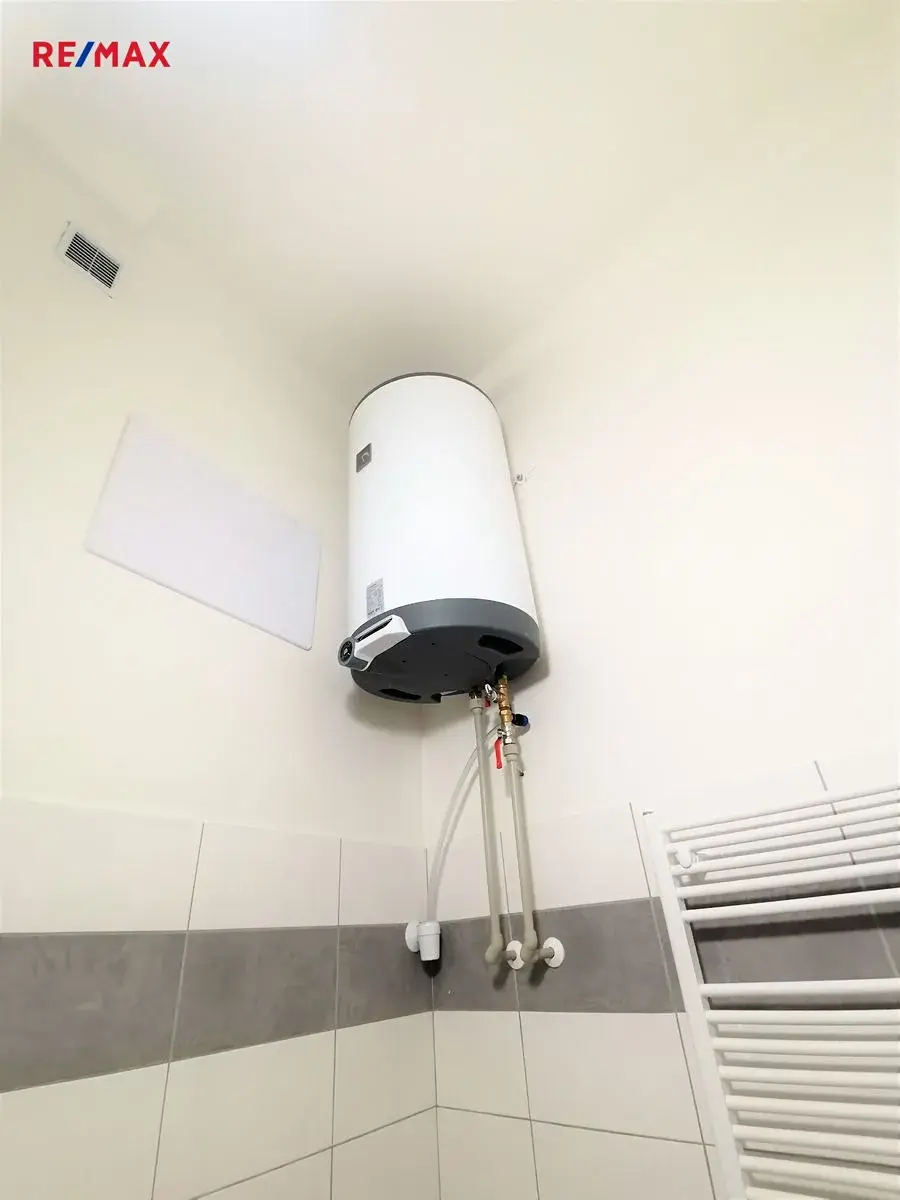 V celém bytě je položeno lino, na WC a v koupelně pak keramická dlažba. Vytápění bytu zajišťuje elektrický kotel, ohřev vody pak bojler umístěný v koupelně.