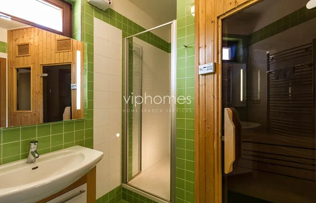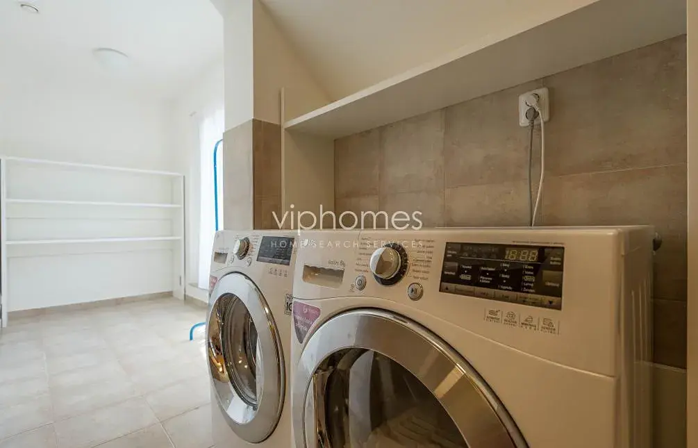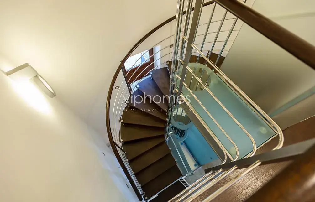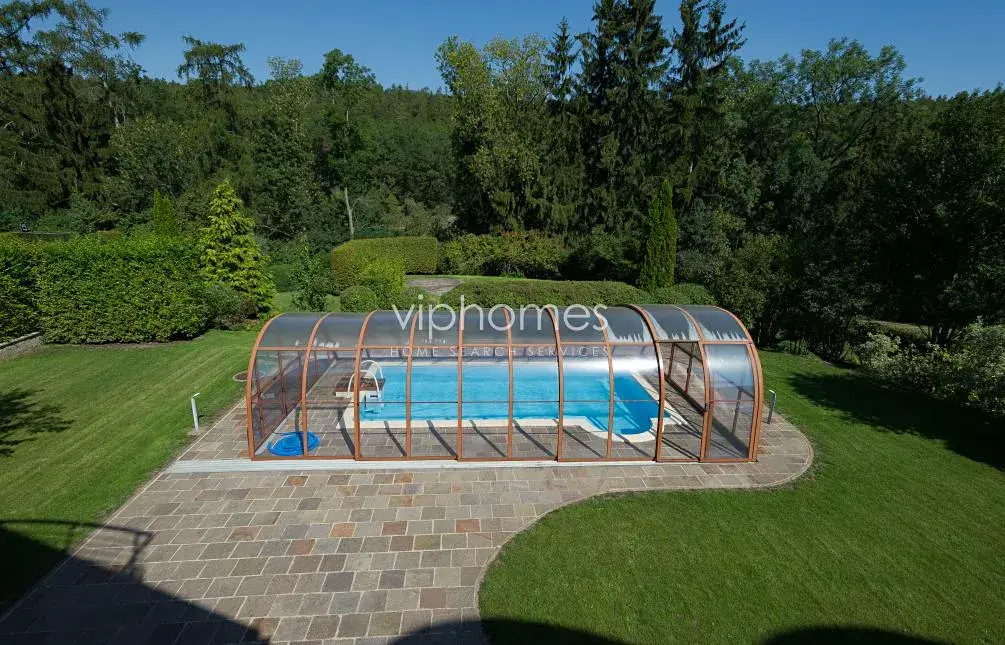 Venkovní krytý vyhřívaný bazén, mramorové obklady a dlažba, velká okna s nádherným výhledem, dubové podlahy, vytápěná dlažba v koupelnách, efektní vodovodní a sprchové baterie, luxusní kuchyň, vestavěné skříně, WiFi internet, video intercom, alarm. Celý dům je klimatizován.