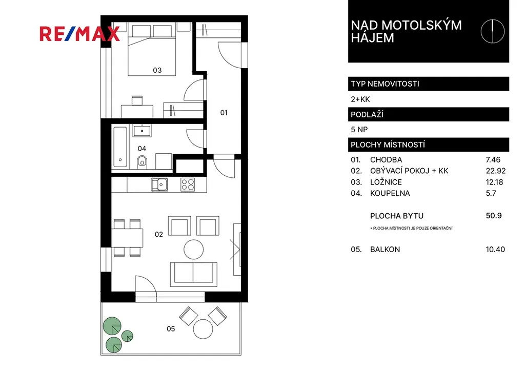 Byt se nachází v 5. patře moderního bytového domu s výtahem, ve 2.etapě rezidenci Nad Motolským Hájem, postavenou v 2014 roku společnosti Daramis. Tato developerská společnost je známá svým důrazem na kvalitu provedení, nadčasovou architekturu a komfort bydlení. Součástí prodeje je garážové stání v podzemní garáži a sklepní kóje, což výrazně zvyšuje komfort každodenního bydlení.