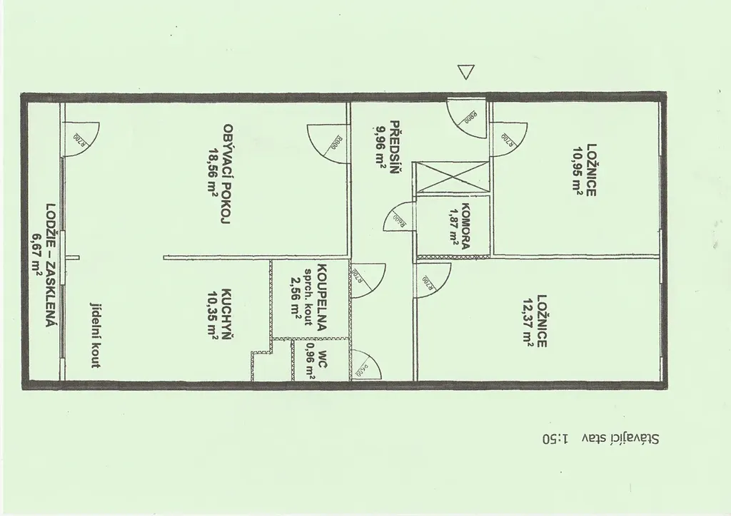 Byt má užitnou plochu 68 m² a je umístěn v 9. patře, což poskytuje překrásný výhled na okolní krajinu. Dispozice bytu zahrnuje 2 samostatné ložnice, obývací pokoj spojený volným průchodem do kuchyně s jídelnou a prostornou lodžii o ploše 7 m², která je ideálním místem pro relaxaci či pěstování rostlin. Koupelna se sprchovým koutem a WC jsou v bytě odděleně. K bytu náleží také komora na patře vedle bytu o ploše cca 1,2 m², která nabízí další úložné prostory.