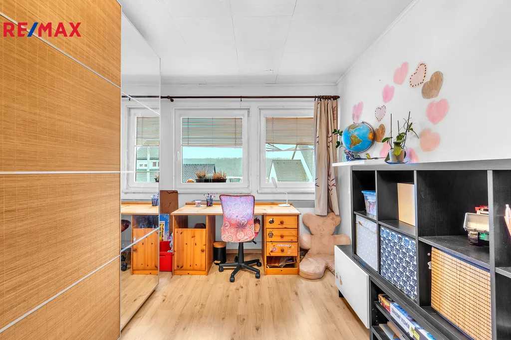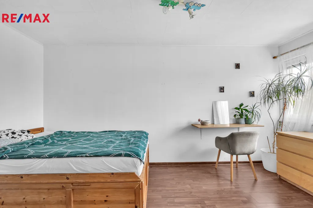 V patře se nachází další dva pokoje, obývací pokoj propojený s kuchyní a koupelna se záchodem. Celý dům působí vzdušně a prakticky, takže se tu bude dobře bydlet jak rodině s dětmi, tak i těm, kteří chtějí víc prostoru pro práci z domova nebo své koníčky. Bonus navíc je půda, která nabízí další úložné možnosti.