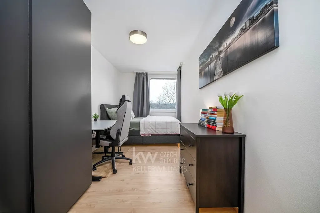 Do samostatné ložnice se kromě postele pohodlně vejde i pracovní kout nebo šatní stěna, což je pro dnešní způsob bydlení velké plus. Celkově je dispozice postavená tak, aby byl byt snadno obyvatelný a zároveň dobře pronajímatelný.