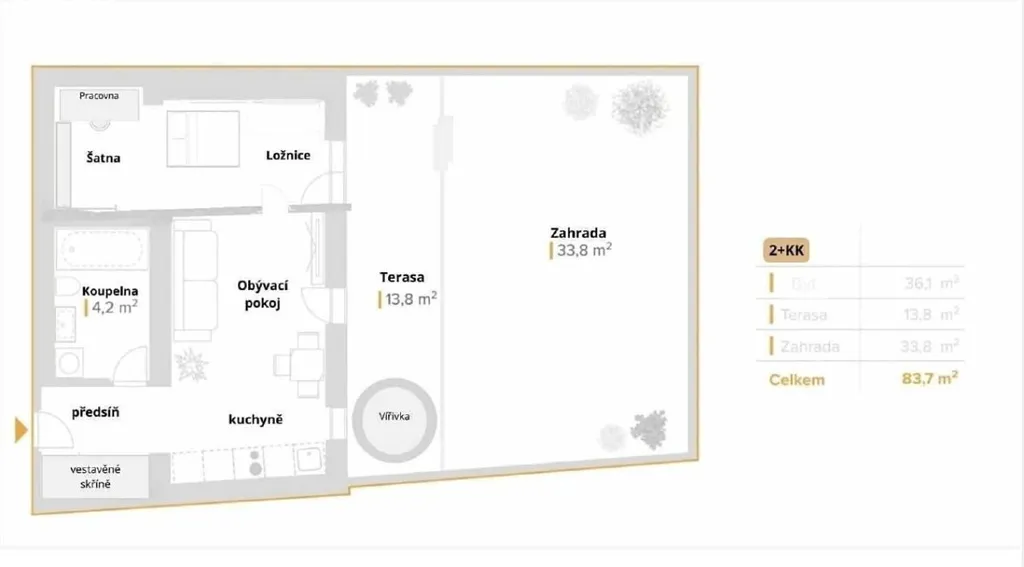 Ke dlouhodobému pronájmu nabízíme krásný byt o dispozici 2+kk v klidné lokalitě Brno - Žabovřesky. Byt o celkové výměře 36 m2 (+ terasa 13,8 m2) se nachází v přízemí cihlového domu. K bytu patří zastřešená terasa s menší zahrádkou.