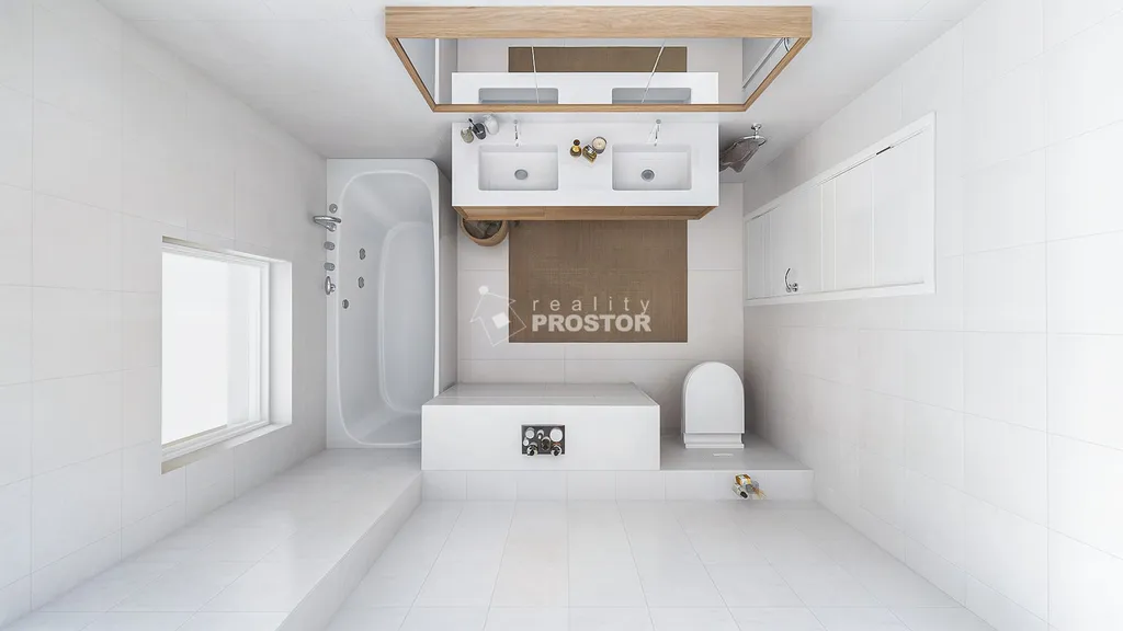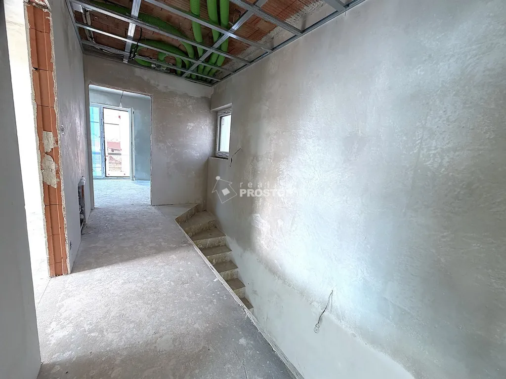 V přízemí domu je prostorný obývací pokoj s kuchyňským koutem, jenž díky velkým francouzským oknům nabízí dostatek přirozeného světla a přímý vstup na zahradu s terasou orientovanou na jihovýchod. Dále je zde pokoj vhodný jako ložnice, pracovna nebo pokoj pro hosty, samostatné WC a praktická technická místnost vybavená tepelným čerpadlem (vzduch–voda), výlevkou a přípravou pro pračku i sušičku. V patře se nacházejí tři prostorné ložnice a komfortní koupelna s vanou a toaletou.