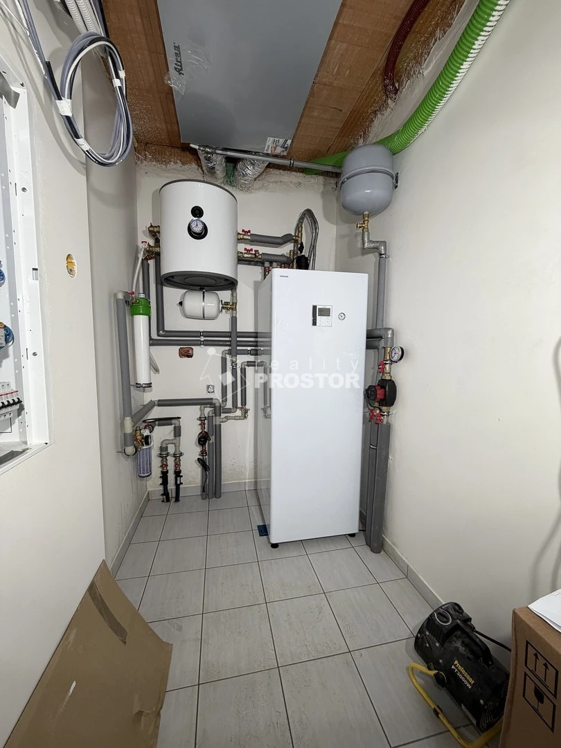 Dům je vytápěn úsporným tepelným čerpadlem napojeným na podlahové vytápění, je vybaven rekuperací s řízeným větráním a kvalitními šestikomorovými okny s trojskly. Energetická třída B zajišťuje nízké provozní náklady. Nemovitost je připravena na instalaci moderních úsporných technologií, jako jsou fotovoltaické panely, závlahový systém nebo multimediální rozvody. Stavba je provedena s důrazem na detail, funkčnost a dlouhou životnost s použitím kvalitních materiálů od renomovaných dodavatelů.