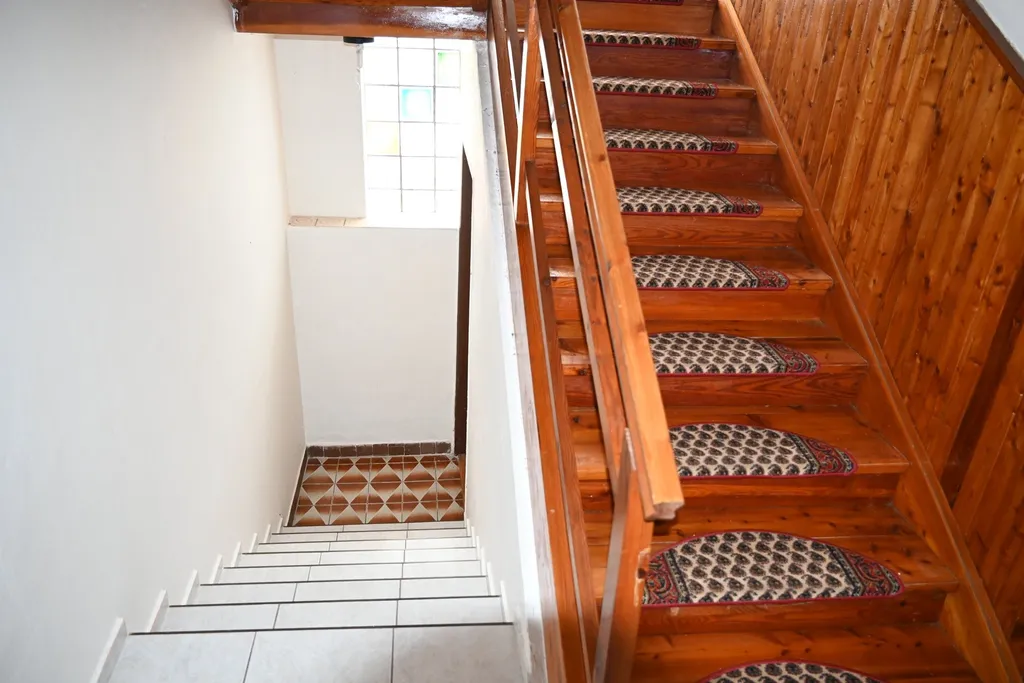 Suterén: čtyři skladovací místnosti, garáž s automatickým ovládáním vrat a technická místnost s plynovým kotlem