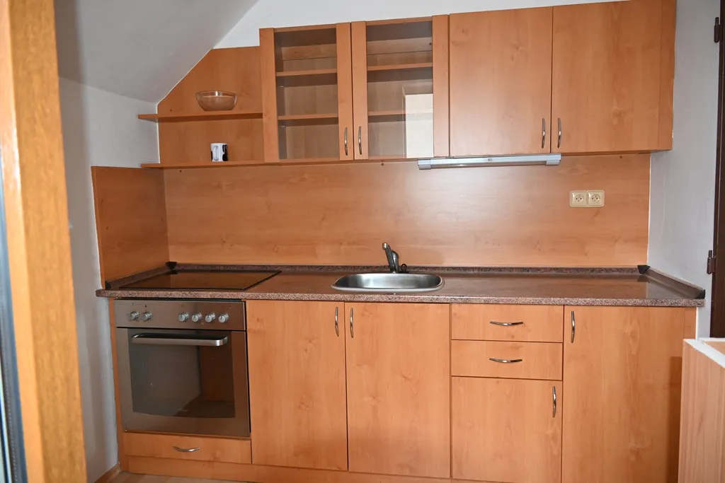 2. nadzemní podlaží (2+1): samostatná kuchyň, obývací pokoj, ložnice – oba pokoje mají vstup na terasu, samostatné WC