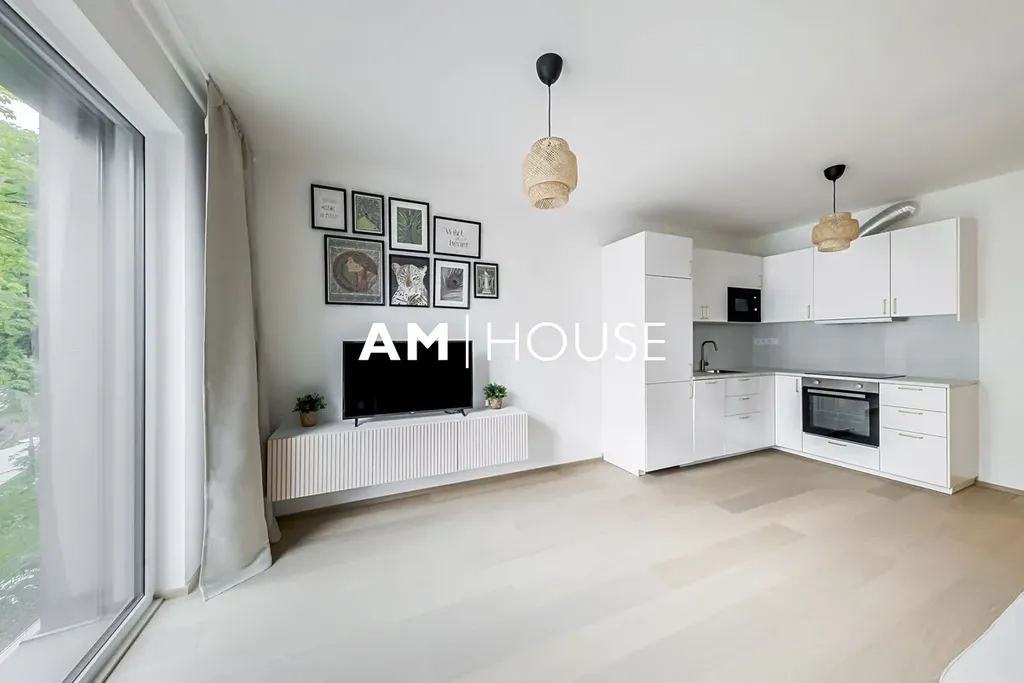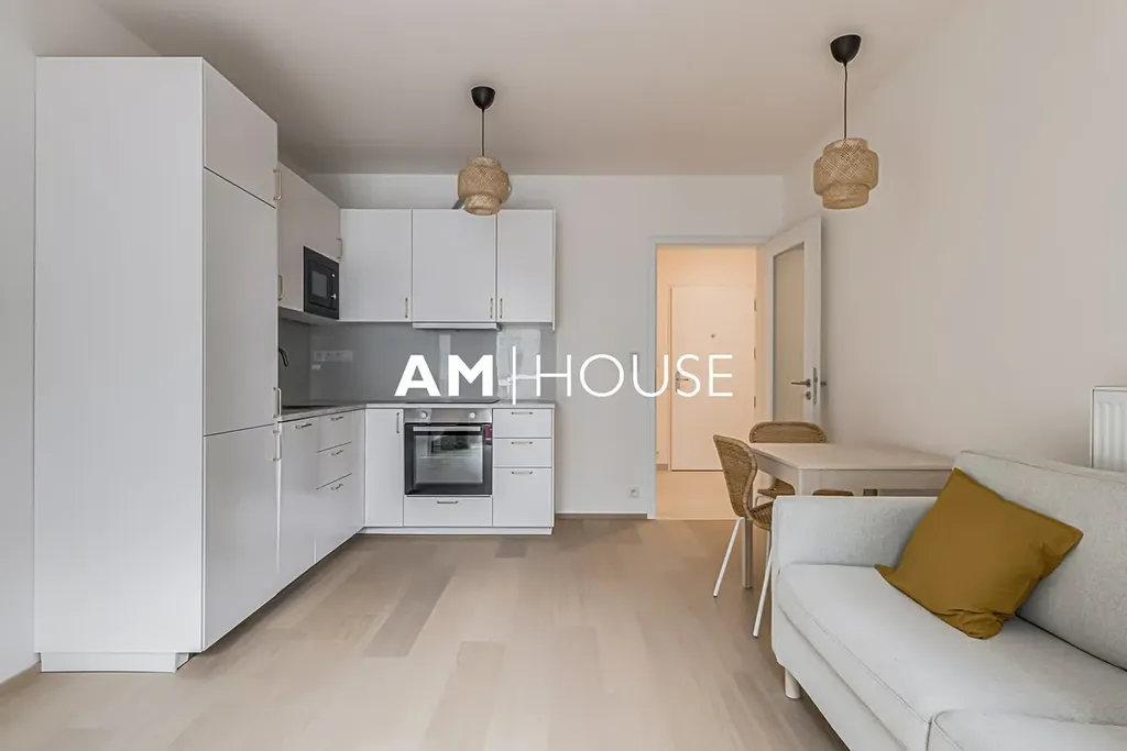 Dispozice jednotky se skládá z obývacího pokoje s vybavenou kuchyňskou linkou. V privátní části bytu je ložnice. Byt má koupelnu s vanou, umyvadlem, WC. K dispozice je komora s šatnou a pračkou.