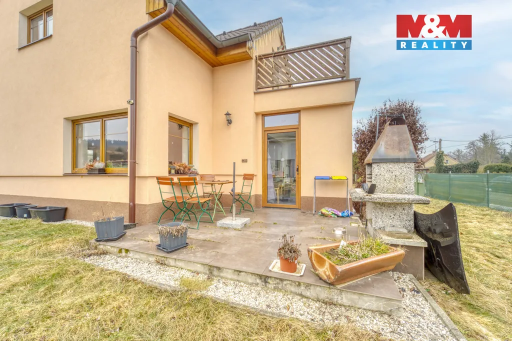 Nabízíme k prodeji prostorný rodinný dům s garáží a zimní zahradou o dispozici 5+1 v klidné části obce Dolany u Klatov. Velkou výhodou této lokality je kompletní občanská vybavenost – mateřská a základní škola, obchod, pošta i praktický lékař v docházkové vzdálenosti. Samostatně stojící cihlový dům se nachází na rovinatém pozemku o celkové výměře 1 029 m² a představuje ideální volbu pro rodinné bydlení v klidném venkovském prostředí. Užitná plocha domu činí 157 m² a disponuje dvěma koupelnami, vestavěnými skříněmi a krbovou vložkou v obývacím pokoji. Součástí domu je také balkón s výhledem do okolní přírody, garáž a zimní zahrada. Vytápění je řešeno podlahovým topením a dům je vybaven tepelným čerpadlem. Na zahradě se nachází krytý bazén a nemovitost je vybavena vlastní čistírnou odpadních vod (ČOV).Nepropásněte tuto jedinečnou příležitost k pořízení vysněného domova v oblíbené lokalitě.