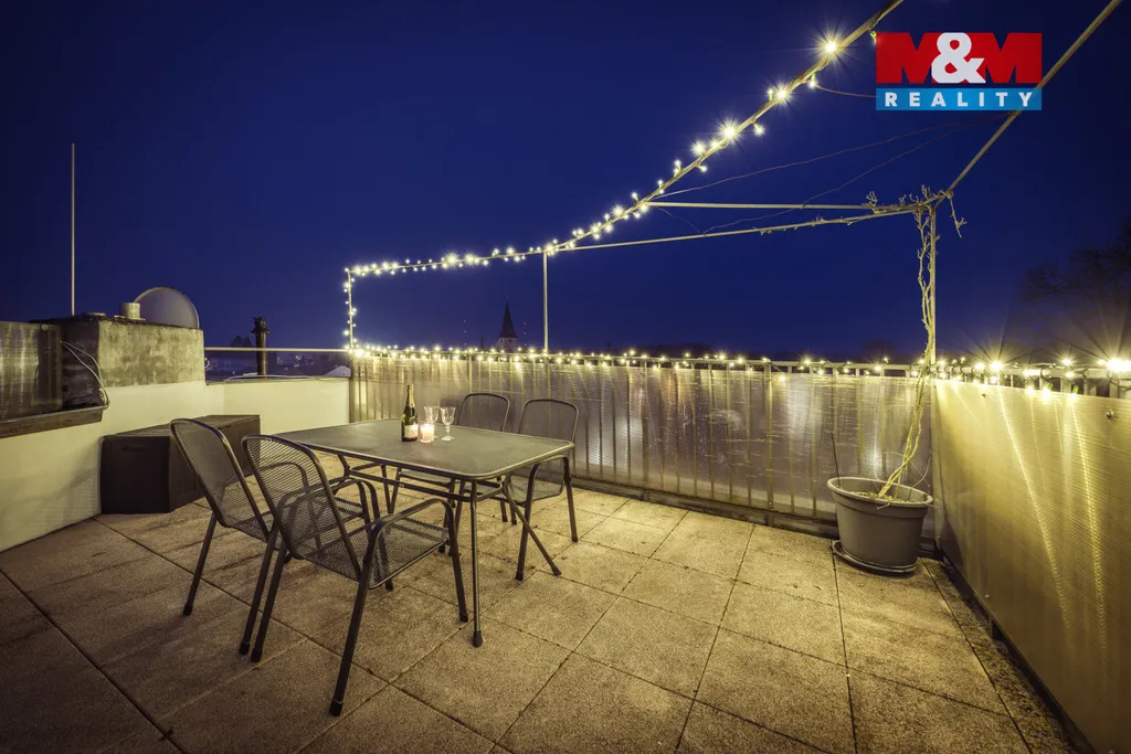 Nabízíme ke koupi výjimečný byt 2+kk se střešní terasou v centru Poděbrad. Byt o ploše 67,76 m² se nachází ve 3. patře cihlového domu v historické části města, pouhých 50 m od náměstí. K bytu náleží střešní terasa o velikosti 25 m² s výhledem na zámeckou zahradu a město, sklep o ploše 19 m² a možnost využívání společné zahrádky s posezením. Velkým benefitem jsou také dva balkóny orientované na lázeňskou kolonádu. Dispozice nabízí prostorný obývací pokoj s kuchyňským koutem a balkonem, ložnici s balkonem, koupelnu s vanou, toaletou a bidetem a předsíň. Díky velikosti a uspořádání je možné byt snadno upravit na dispozici 3+kk. Byt byl kolaudován v roce 2003 a v roce 2019 prošel kompletní rekonstrukcí, včetně protihlukových a tepelně izolačních oken. Vytápění a ohřev vody zajišťuje plynový kotel. V bytě je vzorný, řádně platící nájemce, který může po dohodě setrvat, což činí nabídku zajímavou i jako investici. V okolí se nachází centrum, lázeňská kolonáda, zámek, cyklostezka a jezero.