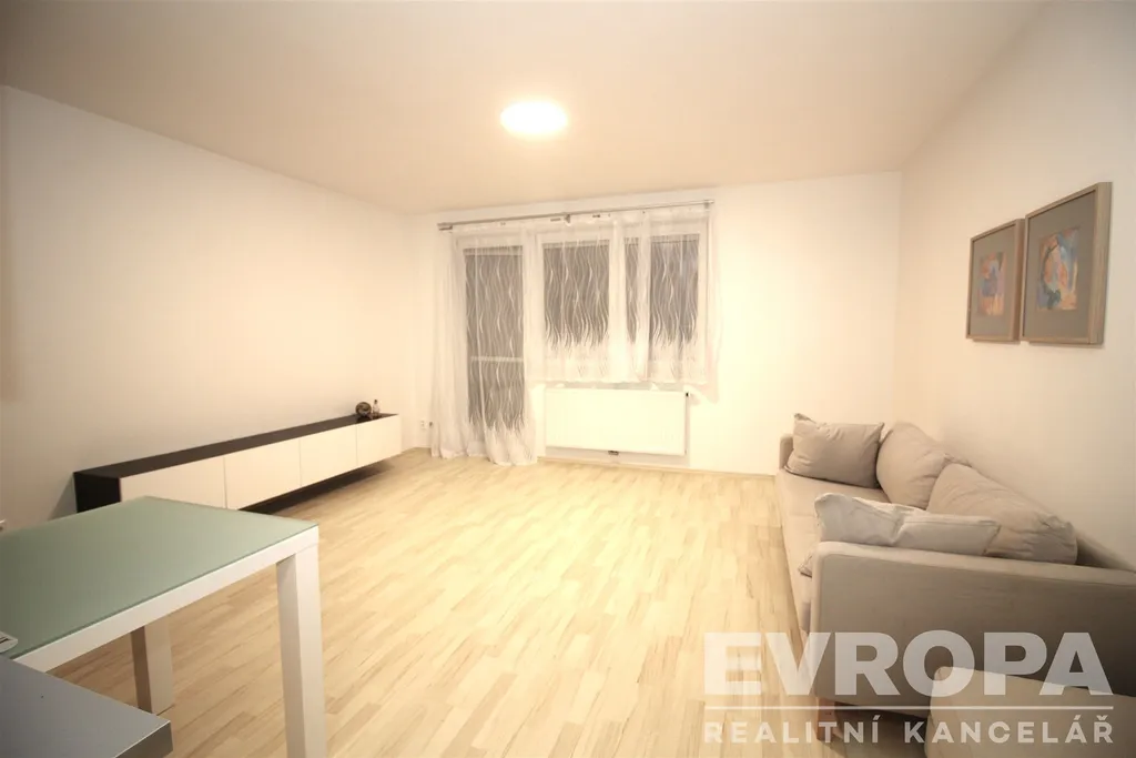 Byt je částečně vybavený, k dispozici Vám bude prostorná bílá kuchyňská linka s vestavěnými spotřebiči (lednice s mrazákem, trouba, varná deska, digestoř, mikrovlnná trouba a myčka) a jídelní stůl pro 2 osoby. V obýváku jsou zavěšené skříňky pod TV, gauč a taburet. Spoustu úložného prostoru poskytne vestavěná skříň na chodbě a šatní skříň v ložnici. Na podlaze v obýváku a ložnici je laminátová plovoucí podlaha, v ostatních místnostech je dlažba. Kvalitu bydlení zvyšují bezpečnostní skla a protihluková stěna v ložnici.