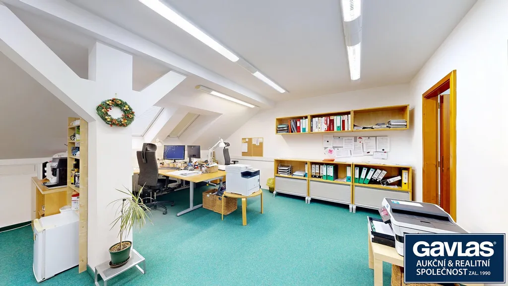 • Kancelářské prostory jsou světlé, dobře dostupné a esteticky podpořené historickými prvky fasády i interiéru.