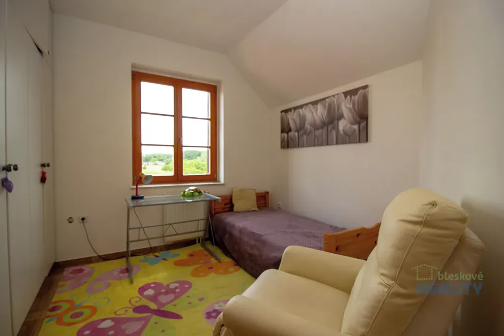 V horním patře se nacházejí tři samostatné, neprůchozí pokoje a druhá koupelna se sprchovým koutem a toaletou. Nad patrem je k dispozici půdní prostor sloužící jako úložné místo.